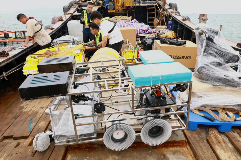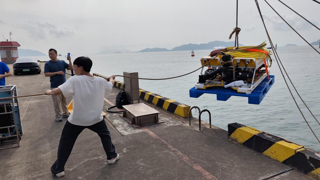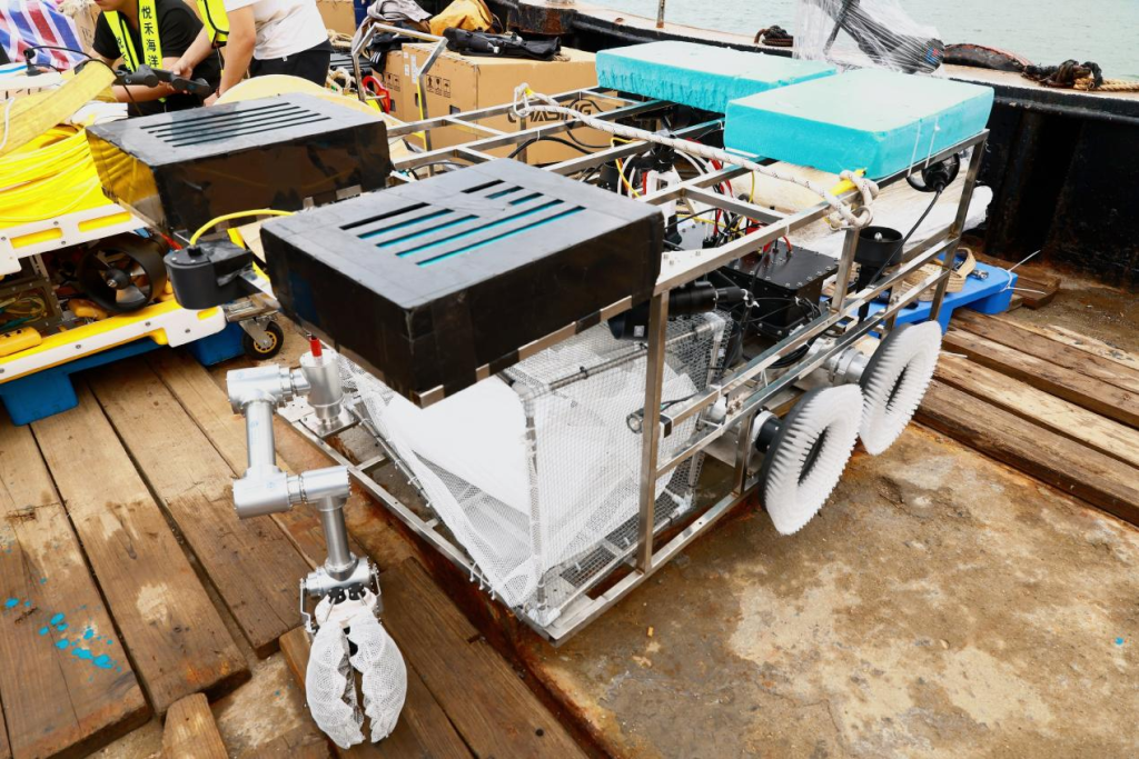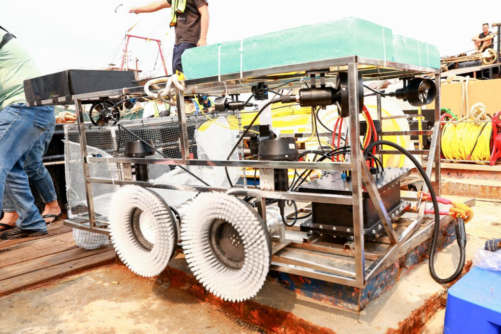 在比赛中,该原型机参加了ROV赛道的精准作业赛道。该赛道的作业任务有回收水下缆绳、收集海瓜子(用小贝壳代替)、清刷水下网衣三个作业任务。